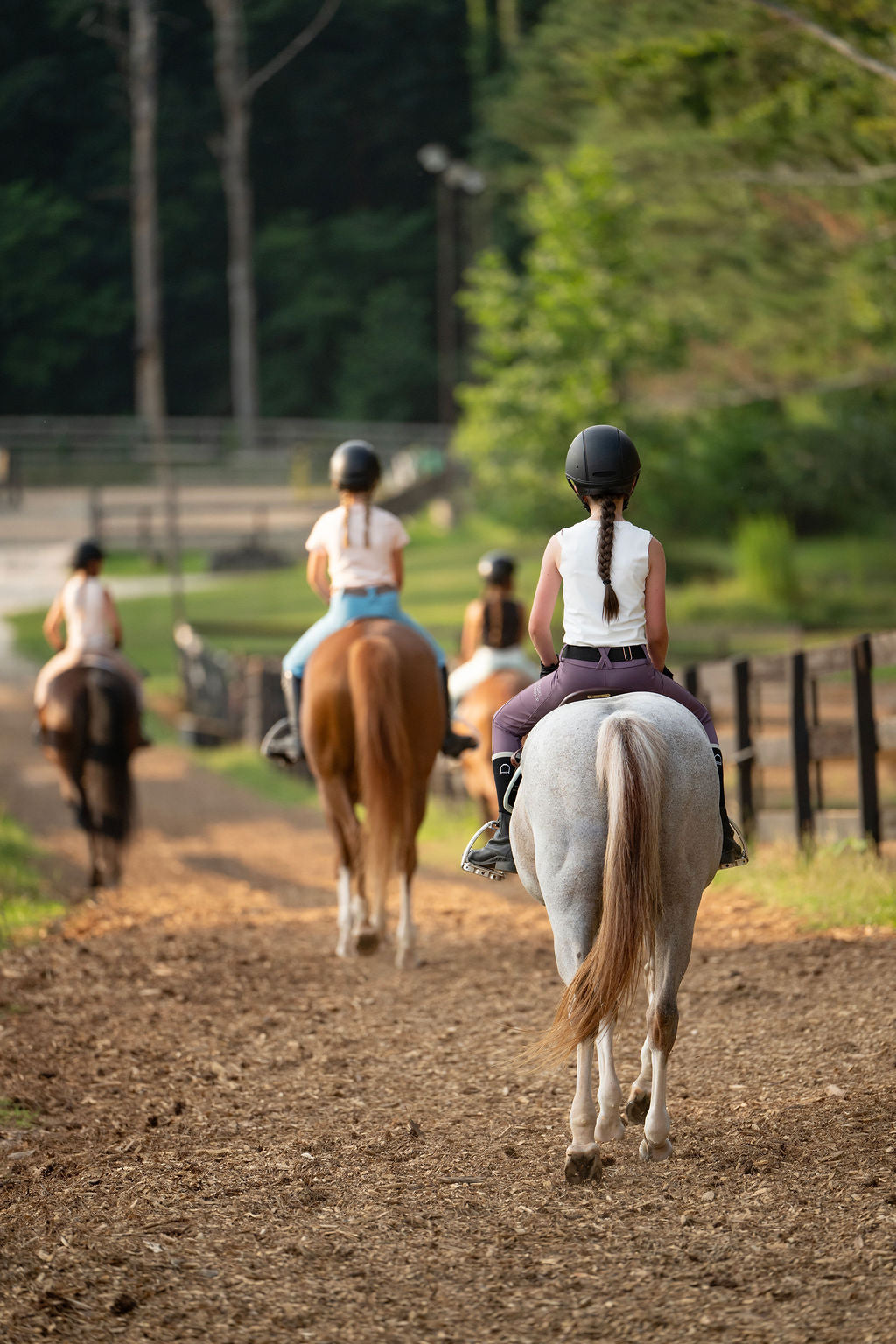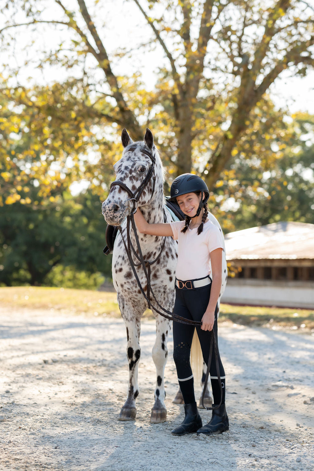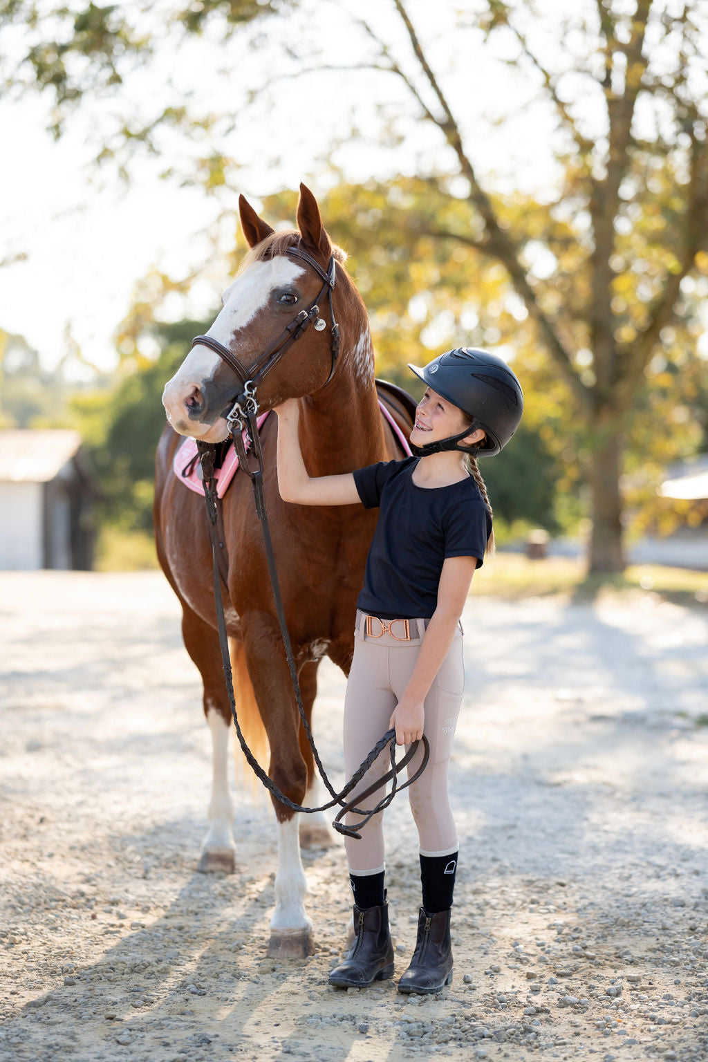 We hand picked our fabrics for ulitimate comfort, function & durability! At Short Stirrup, we believe that each and every one of these characteristics are important for the young rider both under and out of saddle. We know that riding horses also involves taking care of horses and various aspects of barn life. Our apparel and accessories are made for it all- schooling rides, lessons, leisurely hacks, trail rides, barn chores (and don't forget, barn playing!)